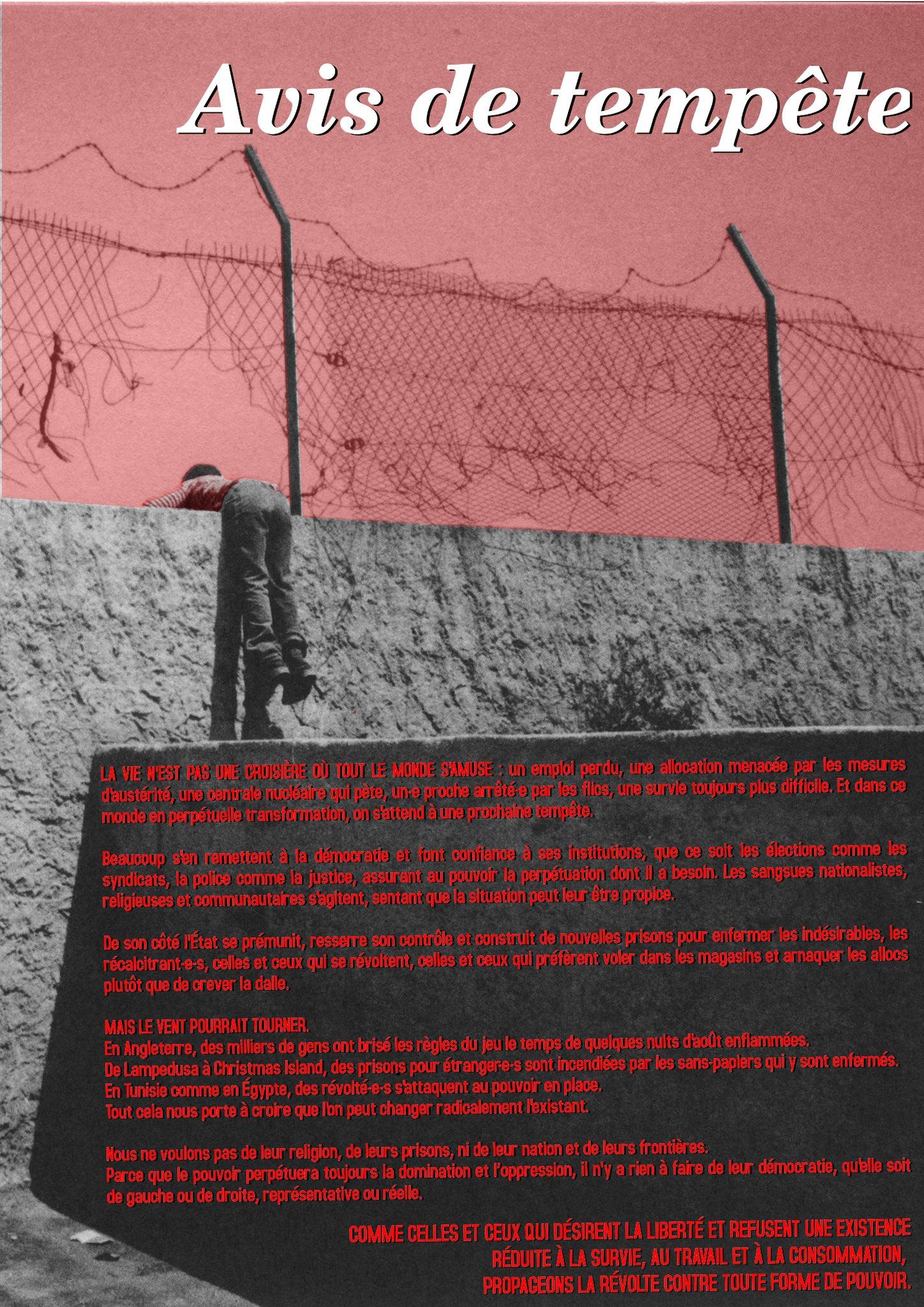 La vie n’est pas une croisière où tout le monde s’amuse : un emploi perdu, une allocation menacée par les mesures d’austérité, une centrale nucléaire qui pète, un-e proche arrêté-e par les flics, une survie toujours plus difficile. Et dans ce monde en perpétuelle transformation, on s’attend à une prochaine tempête.