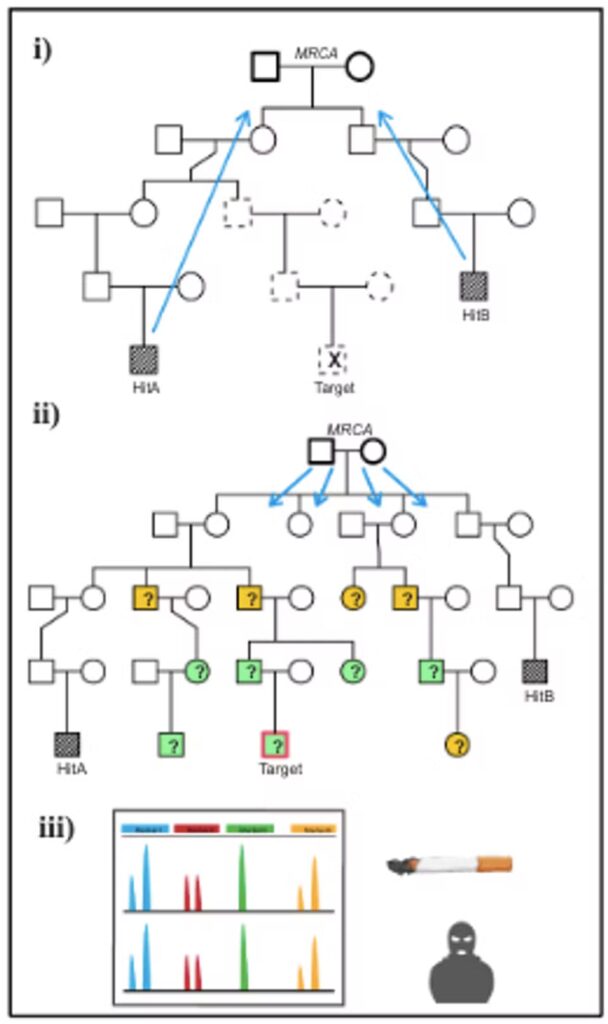 Concrètement, les pandores pourront bientôt comparer -sans risque d’invalidation juridique- une trace génétique inconnue en France avec l’ensemble des vastes bases de données américaines, qui comprennent des dizaines de millions d’ADN d’individus du monde entier (dont environ 2 millions de ‘Français’), cédés volontairement à des sites qui proposent des tests récréatifs à des personnes curieuses de leurs origines. Et de là… retrouver non pas directement l’ADN de la personne recherchée, ce serait un hasard trop facile, mais celui de membres de sa famille qui ont un ascendant commun et donc un bout d’ADN commun avec elle, jusqu’aux cousins du 3e degré, et ainsi resserrer de proche en proche l’étau vers l’identification de la cible à qui appartient l’ADN inconnu initial.