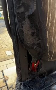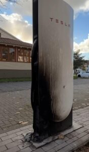 C’est pourquoi nous avons incendié quatre bornes de recharge Tesla et deux armoires électriques adjacentes avec de l’essence. Sabotons ce régime de mort ! Sabotons leur capitalisme (vert) !